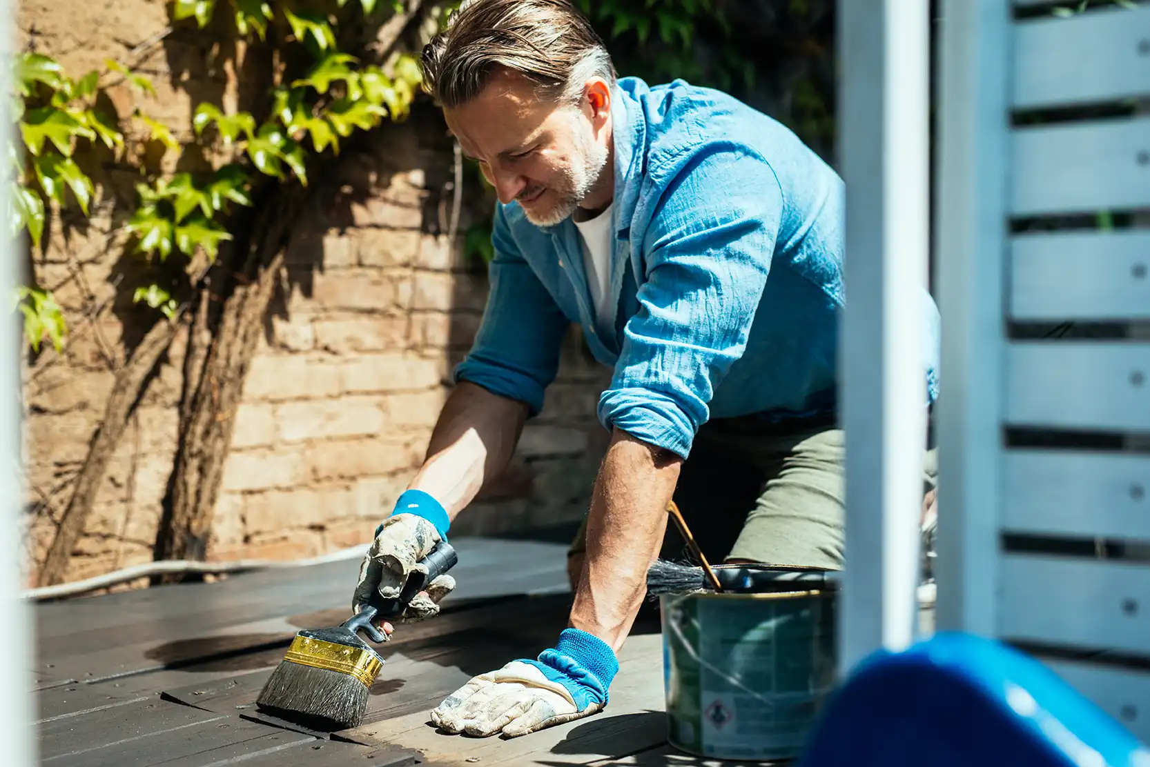 „Gut vorbereitet ist halb geschützt“, empfiehlt Holzwerk Rutesheim. Bevor Farbe, Öl, Wachs oder Lasur aufgetragen werden, muss das Holz sauber, trocken und glatt sein. Alte Altbeschichtungen oder Verwitterungen abschleifen, ggf. auch Nut/ Feder-Verbindungen säubern. Danach eine passende Grundierung wählen – etwa Holzgrund oder Grundieröl mit Bläueschutz. Diese Schritte helfen, dass der Schutz tief einzieht und lange hält.